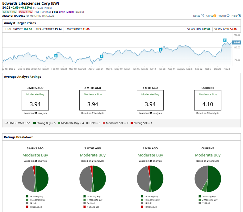 On October 9, UBS analyst Danielle Antalffy maintained a “Hold” rating on Edwards Lifesciences and set an $85 price target.