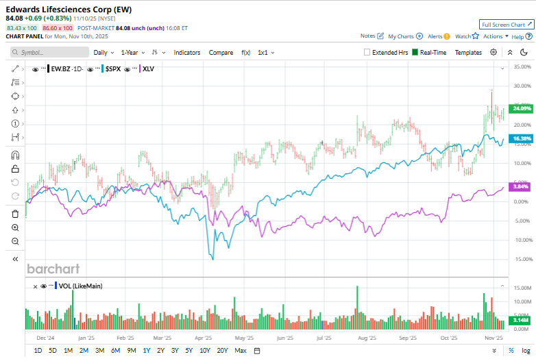 With a market cap of $48.4 billion, Edwards Lifesciences Corporation (EW) is a global medical technology company specializing in innovative products for structural heart disease and critical care monitoring. Founded in 1958, the California-based company is recognized as a pioneer and market leader in transcatheter heart valve therapies. It also develops surgical heart valves, repair products for mitral and tricuspid valve disease, and advanced hemodynamic monitoring systems used in intensive care and operating rooms.